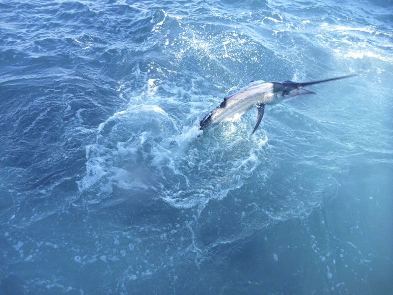 Summertime North Carolina Fishing Charters are almost exclusively trolling trips, as we are targeting Billfish. The dolphin can be caught on light tackle with bait around the boat, but our primary target will be Marlin and Sailfish. There is an annual Big Rock Billfish Tournament in June if you want to do some serious Blue Marlin Fishing!